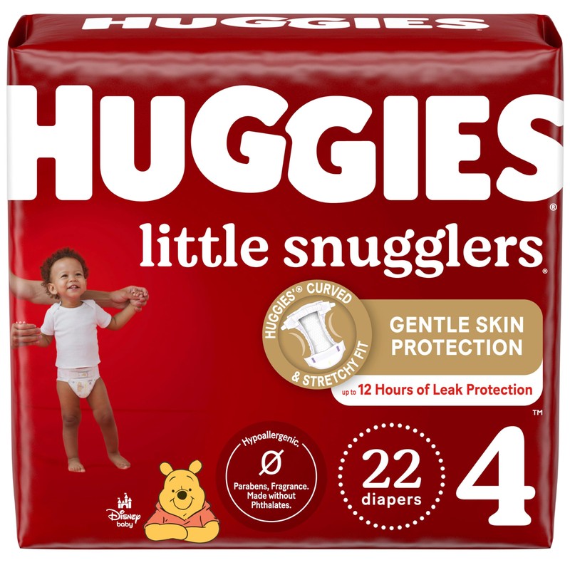 - Huggies Little Snugglers Diapers: 22 baby diapers, size 4 (22-37 lbs); packaging may vary