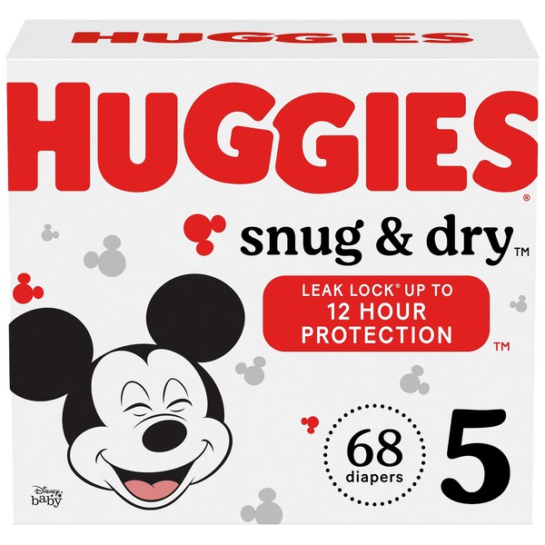 Huggies Snug & Dry Baby Diapers, Size 5 (27+ lbs), 68 Ct