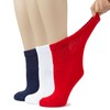 HUGH UGOLI Women's Cotton Diabetic Ankle Socks, Wide, Loose & Stretchy, Seamless Toe & Non Binding Top, 3 Pairs, Navy Blue/White/Red, Shoe Size: 6-9
