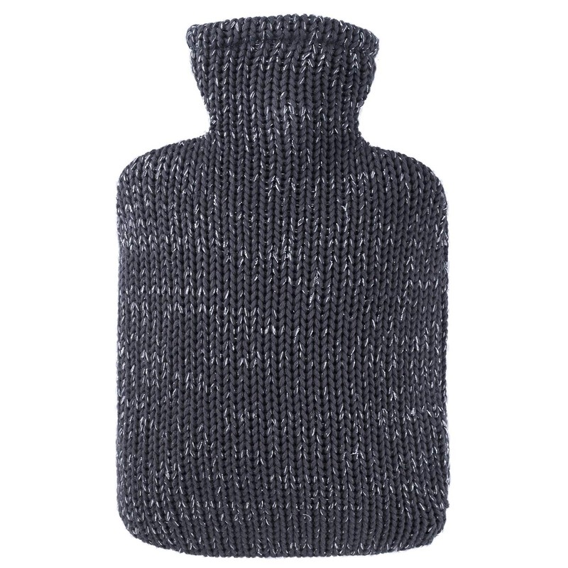 Hugo Frosch Classic Hot Water Bottle 1.8 L with Knitted Cover Lurex Anthracite