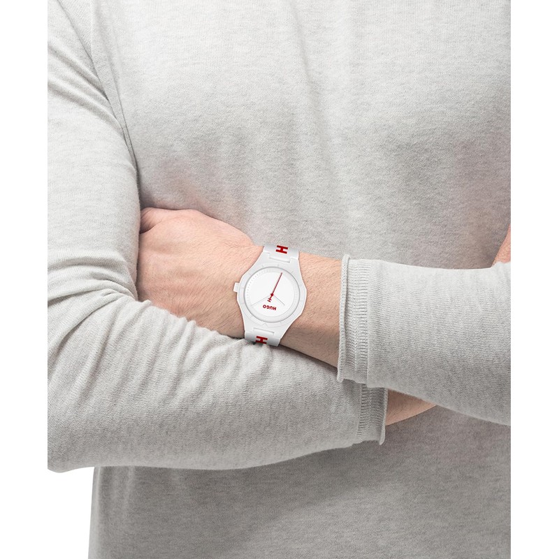 - Fun, colorful and easy to wear, the #LIT FOR HIM is a must-have everyday timepiece from HUGO Watches with a modern, fluid silhouette. The lightweight, nylon-infused resin case is fitted with a soft silicone strap, gloss-printed with a large, contrast-color logo for eye-catching branding.