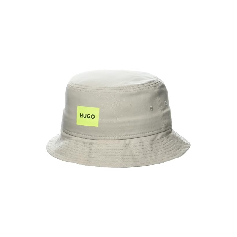 HUGO Men's Square Logo Bucket Hat, Oat Cream, Large-X-Large