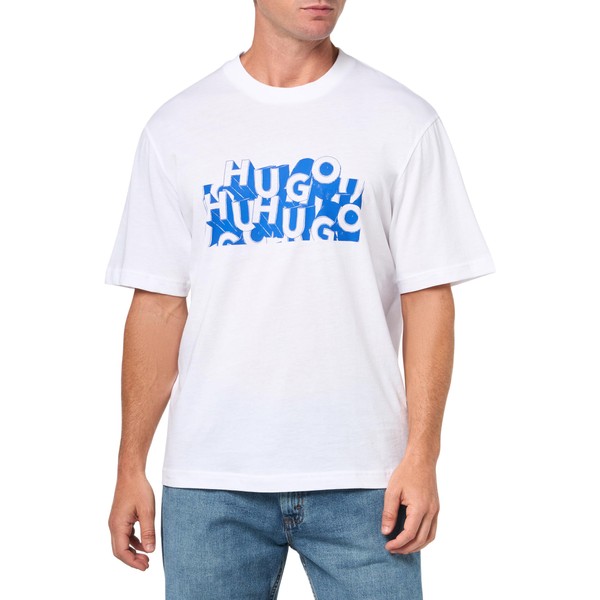 HUGO, Repeat Badge Logo Crewneck T-Shirt, White Bone, L