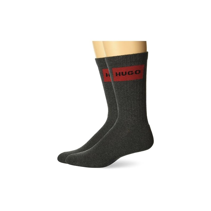 HUGO Two Pack Red Logo Design Quarter Ribbed Socks