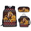 HUGS IDEA Kids Backpack Set Navajo Aztec Native American Sunflower Horse Bookbags with Cooler Food Container and Pencil Case for Children School Bag 3 in 1