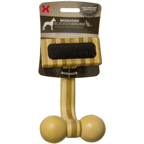 Make sure your pet doesn't look scruffy thanks to the Hugs Bamboo Massaging Slicker Brush that gently untangles and smooths fur. Your pet will stay calm and relaxed as the two massaging balls attached to the brush gently massage your pet as you brush their coat. Designed with the professional pet groomer and pet parent in mind, this brush is made with natural bamboo and will have Fido thinking he's spending a day at the spa.