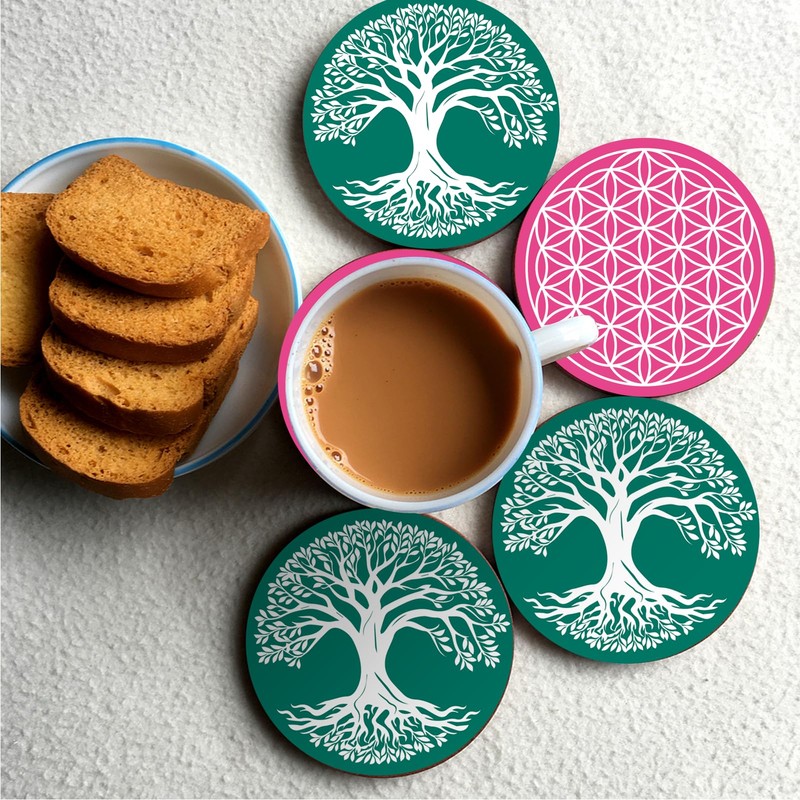 Hugwish Set of 4 Flower of Life Wood for Meditation (15 x 15 cm), Tree of Life for Charging Divination Stones and Pendulums, Flower of Life Decoration