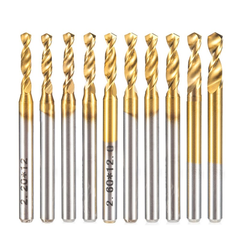 • Twist Micro Drill Bits --- The cutting edge diameter of this PCB twist drill bit is 2.2-3.175 millimeters . The shank diameter is 1/8 inch. This mini drill offers you a variety of types and a size range that you need, perfect for all your crafting and hobby projects. However, micro twist drill bits should not be used in impact drills.
