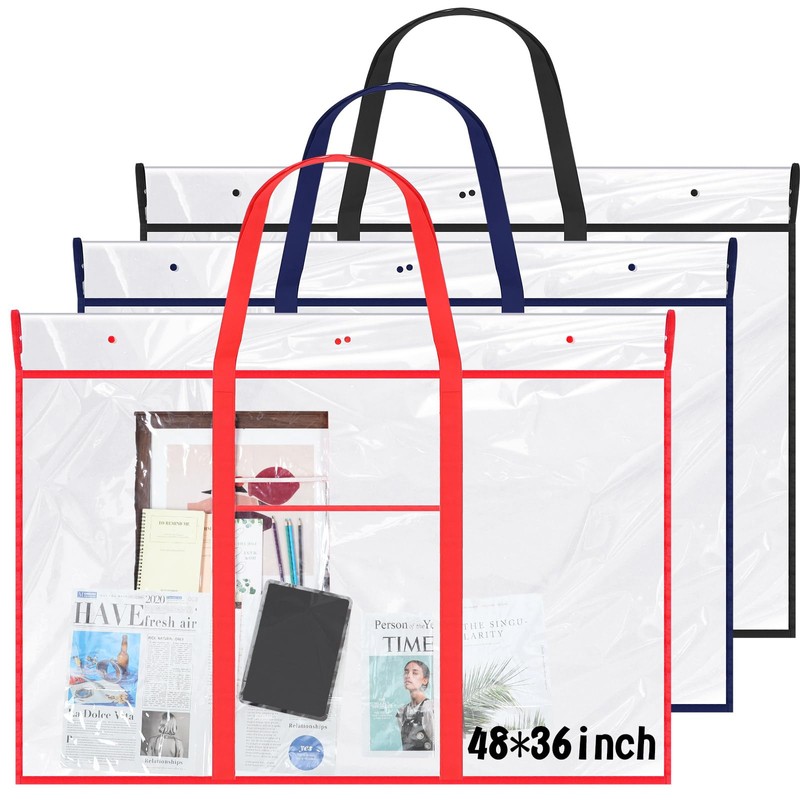 Huhumy 3 Pack Large Poster Storage Bag Bulletin Board Holder Art PVC Folder with Pocket Transparent Art Portfolio Organizer Storage Chart Container for Teacher Paper Teen(48 x 36")