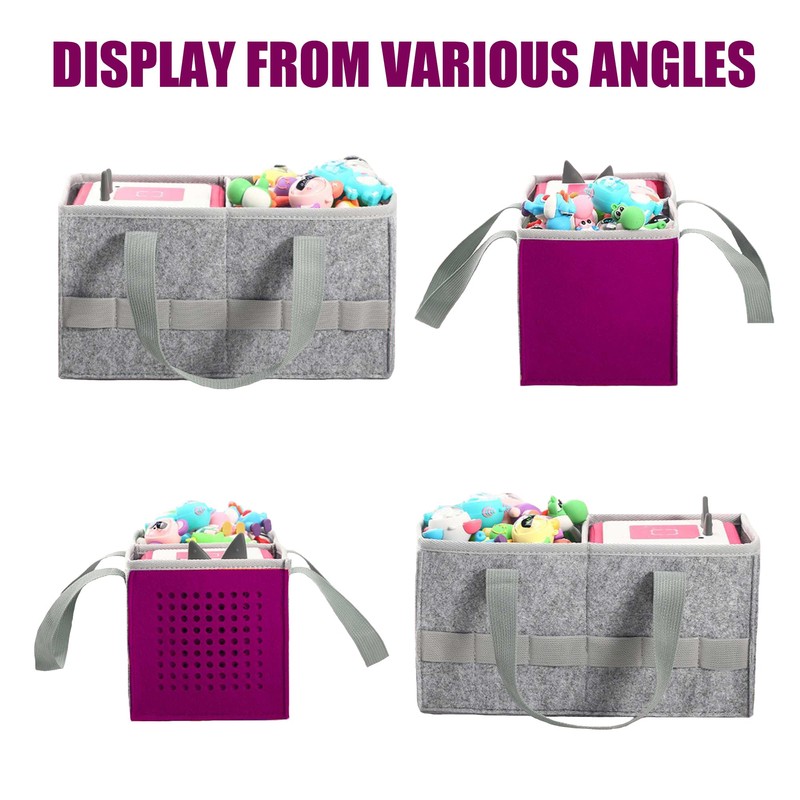 • 【Large Capacity】A storage bag specially designed for Toniebox and accessories. Double compartment storage, there are some hollow holes on the outside of the bag of one side, compact design and perfect construction of the Toniebox. Large capacity for small action figures and more small toys.