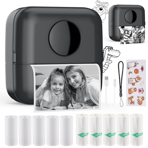 - Multipurpose & Perfect Present: Our inkless printer for printing black and white photos, memos, labels, cute pet stickers, QR codes, etc. Information and images on the phone screen can be printed instantly. If you need a clearer print, please select the original image and darken the print. Improve efficiency by helping you organize and summarize work plans, shopping lists, and more. The ideal birthday, anniversary, Christmas present for anyone.