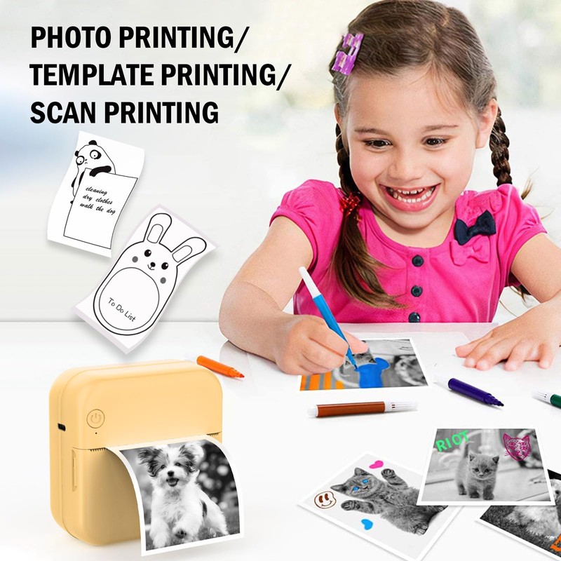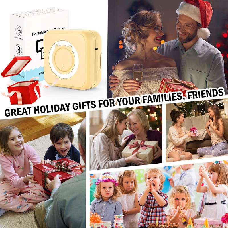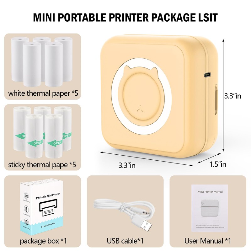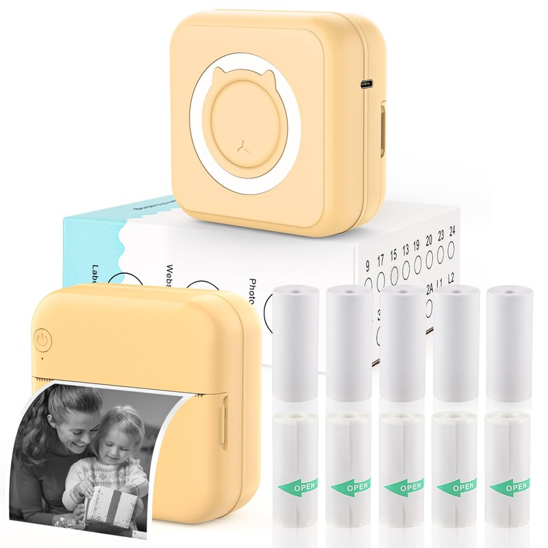 HUIJUTCHEN HUIJUTCHEN Mini Sticker Printer - Mini Pocket Printer for iPhone Thermal Printer with 10 Rolls Thermal Paper for Journal, Memo, Photo, Yellow, Large, US-033