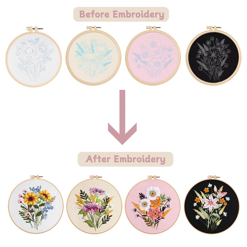 🌺4 set of complete floral embroidery set for adults, beginners, DIY embroidery lovers, if you want to have your own cross stitch decorate, or you want to make a beautiful embroidery gift for your kids or friends, our floral embroidery beginner set is your best choice.