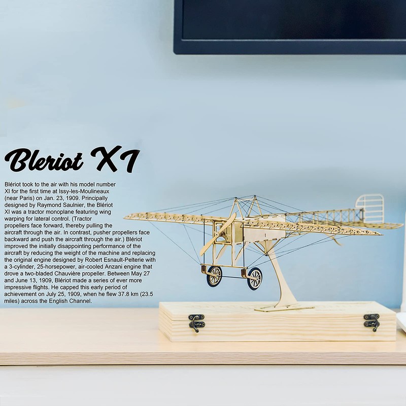 HUIOP Wooden DWH VX14 1:23 Scale 380mm pan Airplane Static Wooden DIY Building Model Bleriot XI Aeroplane 3D Puzzles DIY Aircraft Kit with Wooden Box Brain Teaser Educational STEM for Home Decoration