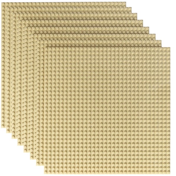 HUIZDQ 8 Pack Classic Baseplates Building Plates for Building Bricks 100% Compatible with All Major Brands-Baseplate, For Kids 3 Years Up, 10" x 10", Sand