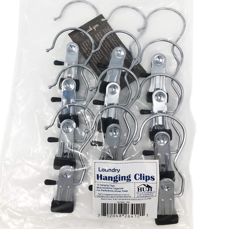 Huji Laundry Hanging Hooks Clothes Boots Chrome Pins Clips Hangers (12PK)