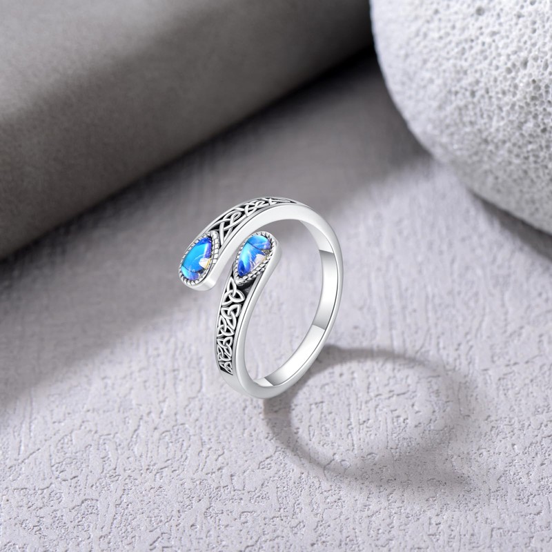 - 【Celtic Ring for Women】 Celtic Spoon Ring featuring two distinct Celtic knot patterns and adorned with two teardrop created moonstones. The intricate knot designs symbolize the interconnectedness of life and eternity, while the moonstones add a mystical glow