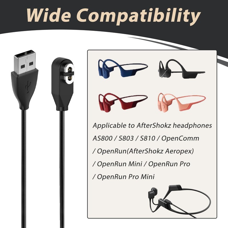 - Wide Compatibility: Replacement charging cable compatible with Shokz Aeropex AS800, OpenRun Pro, OpenRun, OpenRun Mini, OpenComm, and other bone conduction headsets, ensuring seamless charging for a variety of models.
