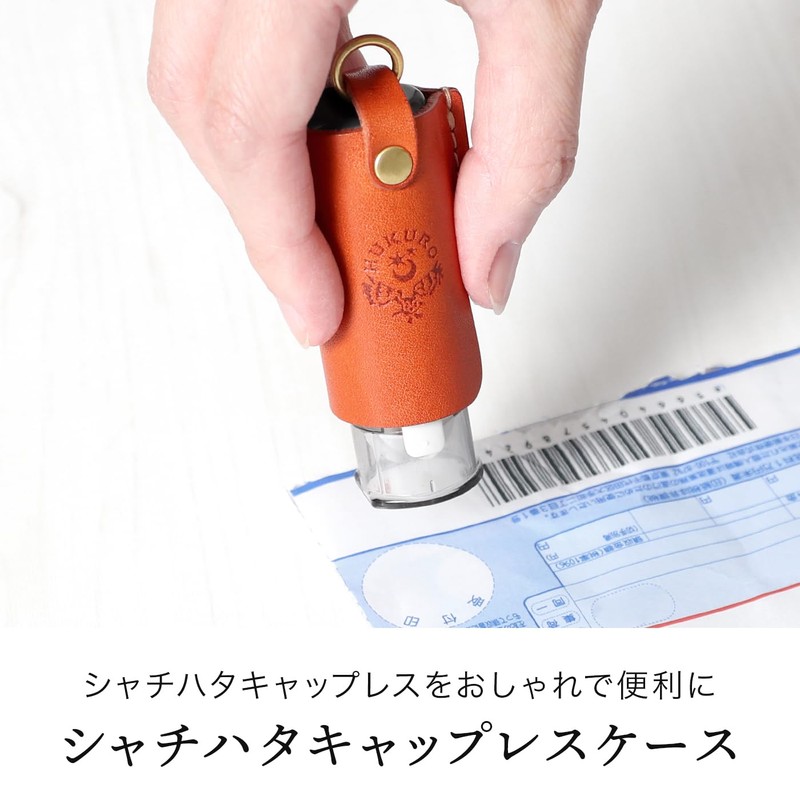 HUKURO Shachihata Capless Case, Capless 9 Cover, Tochigi Leather, Genuine Leather, Men's, Women's, Seal Holder, Made in Japan, HUKURO Orange Owl