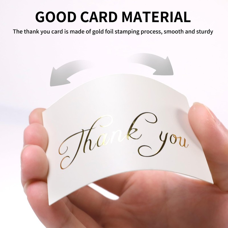 HUKXDGXY Gold Foil Thank You Cards, Elegant White + Black Notes 100 Count, 3.5 x 2 Inch, Writable, Perfect for Small Business Owners, Wedding Thank You Cards, etc.