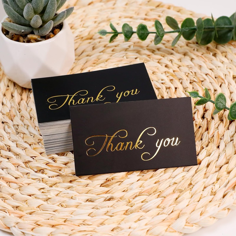 - Premium Design: Elegant white + black thank you cards featuring gold foil lettering in a sophisticated script font for a luxurious, professional look