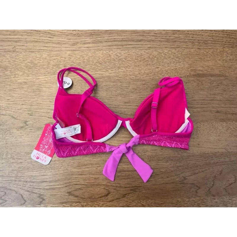 Hula Honey Pink Crochet Lace LARGE D Underwire Adjustable Bikini Swim Top NWT