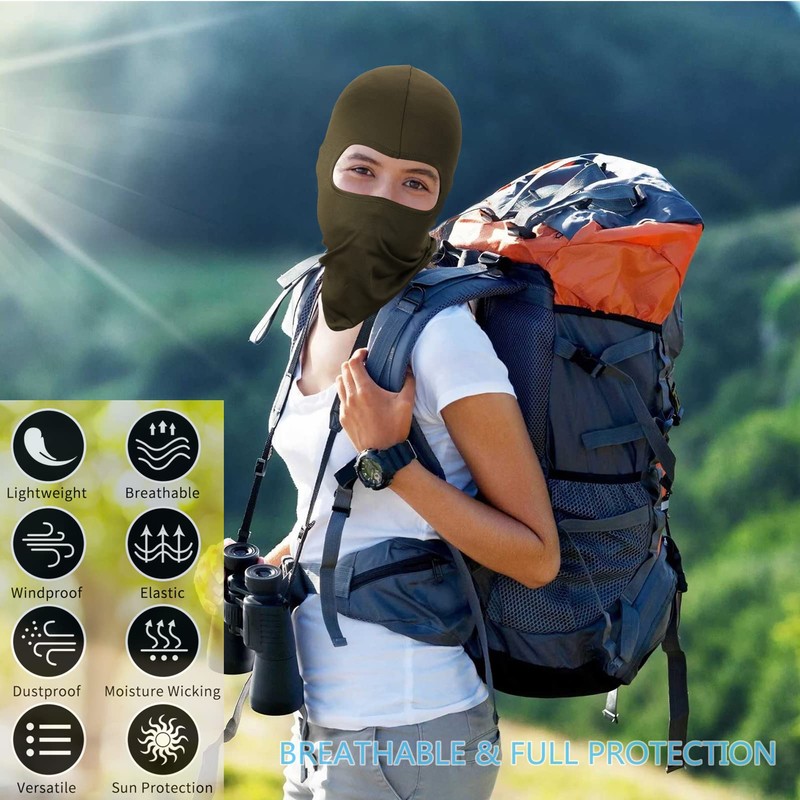 Our full face cover protects the skin of the entire face and the neck, except for the skin around the eyes, helping to block the damage of dust and UV rays,suitable for multiple activities, such as skiing, snowboarding, fishing, motorcycling, running, climbing, hiking, tactical training and other outdoor activities Multi-function:Sun UV protection, summer cooling, windbreak, dust proof and sand control, sweat absorption and quick drying, wrinkle free and machine washable.Suitable for matching with some helmets, etc.
