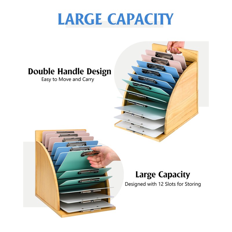 - Large Capacity Clip Board Holder: With a large capacity of 12 slots, this clipboard organizer rack can accommodate at least 12 clipboards with high profile raised clips, ensuring ample space for your clip boards (up to 9" wide) and files.
