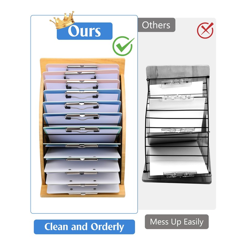 - Long-Lasting Clipboard Organizer for Classroom and Office: This wooden clipboard holder comes with 2 raised side panel that makes its structure more stable. It also designed with dual handles, which could help you move the whole holder easily. Patent Pending