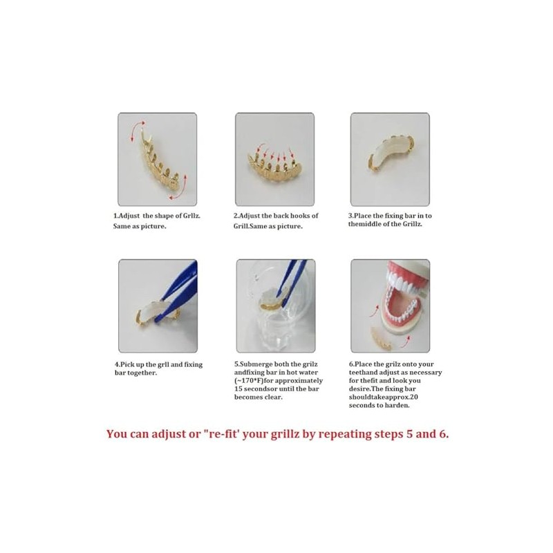 - ★Package Included: Set comes with 3 pieces hip hop single teeth grillz caps, and 3 silicon molding bars. Also include an instruction sheet for easy molding.