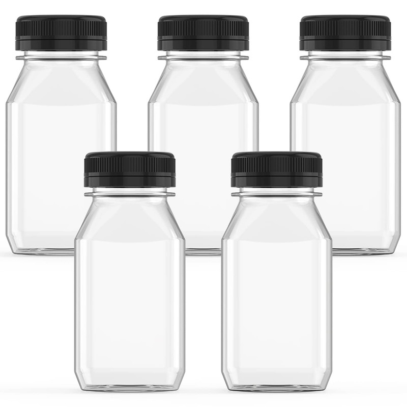 - Package Content: You will get 5 Pcs 8 oz empty plastic juice bottles and 5 Pcs crack-resistant caps, Containers for household or kitchen use to meet your various needs. They are 5.1 x 2.1 x 2.1 inch in size, Small bottle design, Can be carried with you.