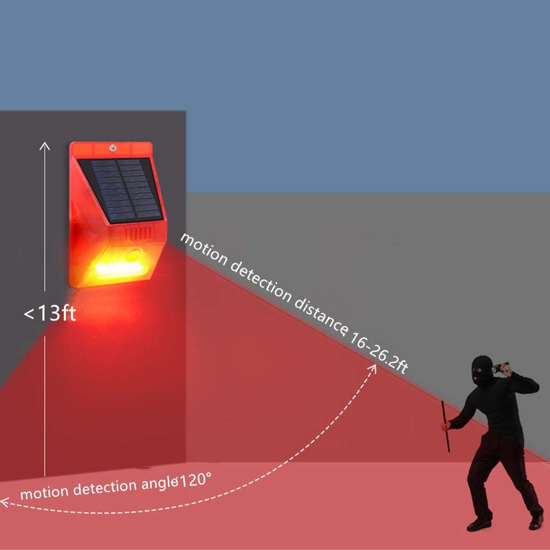 HULPPRE Solar Outdoor Motion Sensor Alarm-129db Loud Siren Lamp Noise Maker, 4 Working Modes Strobe Light with Remote,Say Goodbye to The Unwanted Explorers