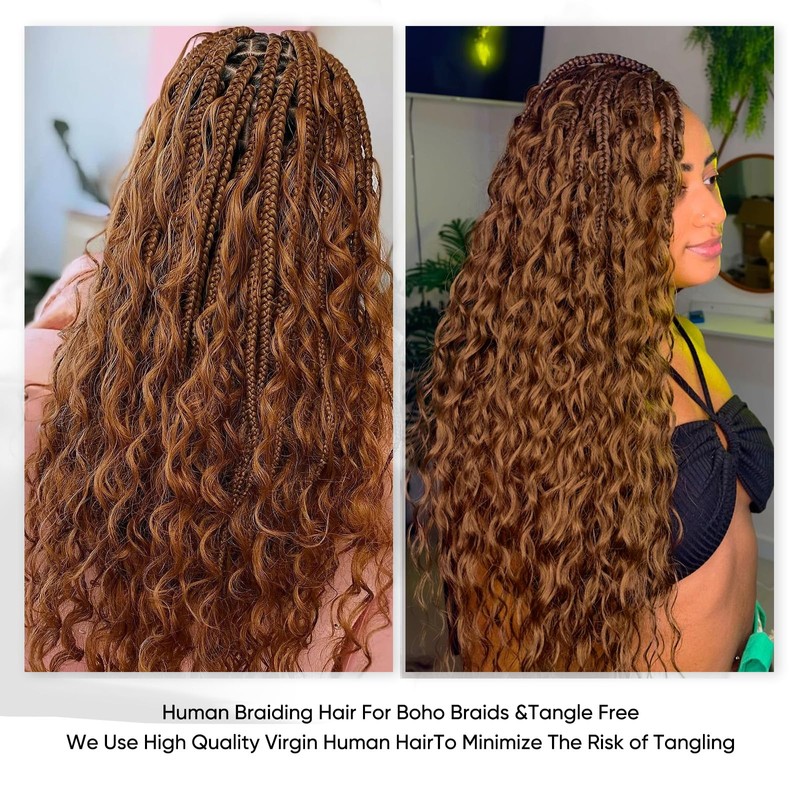 - Human Braiding Hair Material: Boho braids human hair is made of 100% unprocessed Brazilian virgin human hair, soft, smooth, and easy to manage.