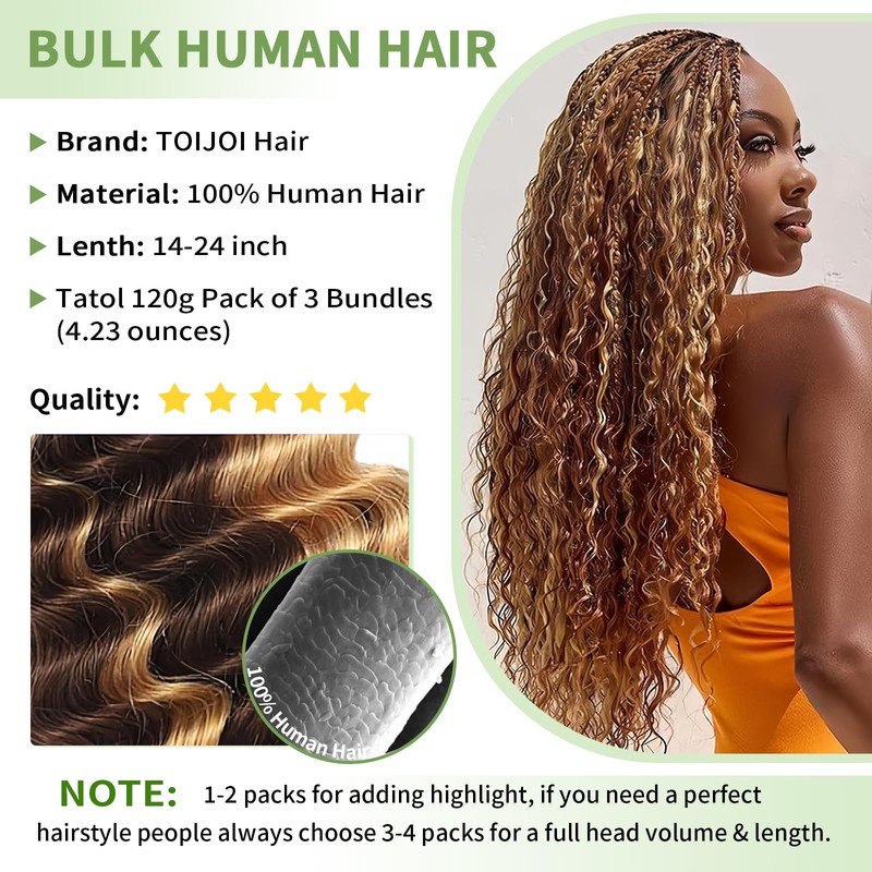 - 💃Stunning in Any Occasion: Whether you’re attending a festival, date, graduation, or birthday party, our boho human braiding hair curly helps you stand out. It effortlessly pairs with natural hair to add length and volume, making it ideal for casual outing, wedding, travel, or gift. Human boho braiding hair creating a natural, low-maintenance look that turns heads wherever you go.