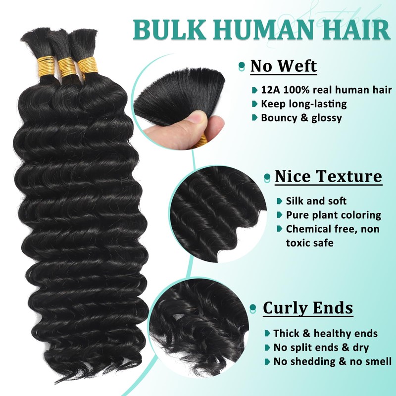 - DIY Versatile Styling: Our Water Wave bulk human hair is no weft, with unmatched versatility, ideal for knotless braids, bohemian crochet braids, and boho Locs,our deep wave bulk hair adds length and volume to your hair. Available in 14-24 inches with popular colors: solid, balayage, highlights and ombre for trendy, head-turning looks.