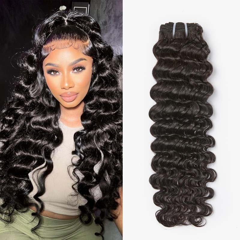 Human Hair Bundle, Wequeen Hair Bundle Human Hair 16A Brazilian Hair Bundle Wet and Wavy Extensions Deep Wave 22 Inch Natural Black