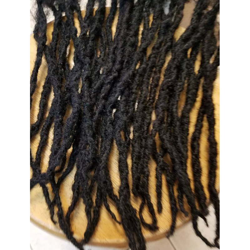 These locks are sold by the bundle of 30. They stretch to 18" inches. About 4mm wide. If you have locks but your hair is thin in some areas, you can buy these and have them attached to your hair by sewing them on or Crohet them on. Or you can buy many bundle to make a full head, about 110 make full head. I Use 100% human hair I make different colours ( 1B and 27,30,33, 2, and 1, red, burgundy) or you can email me the colour you want Then i will make them. You can email the size and leghth that you want if different from this one. Send a message for inquiries or requirements for your personalized order including:- Size- Color- Dread End -Type (double ended or Single Looped)- Length If you have any question Please contact me. Thank you.