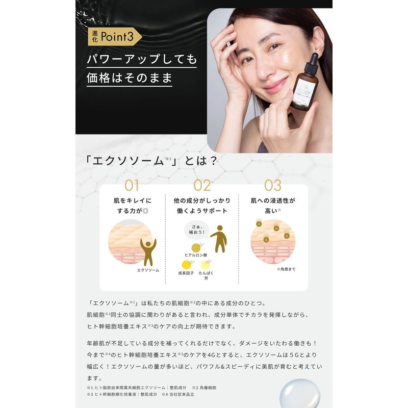 - Point 2: The greater the power of the "Exsoom" as a collaborative research with Anti-Aging Co., Ltd. The abundance of the "Exsoom", the greater the function of various beauty ingredients. However, the exosome is very rare and the amount in the original human stem cell cultivation extract. Therefore, it has been difficult to separate the exosome or combine it with a lipothomic extract. Fracola has created a unique "hybrid shape human stem cell culture extract" with a proprietary technology that collaborates with "Anti-Aging Co., Ltd