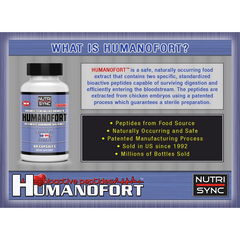 - HUMANOFORT is a safe, naturally occurring food extract that contains two specific, standardized bioactive peptides capable of surviving digestion and efficiently entering the bloodstream.