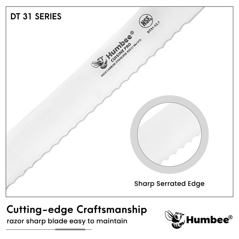 Humbee 12-Inch Offset Bread Knife with Width Wave Teeth (Serrated), Black, DT-31 Series