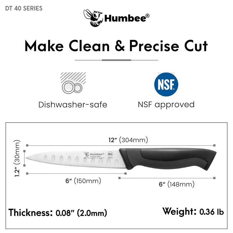 Humbee 6-Inch Slicer knife With Granton edge, Black, DT-40 Series