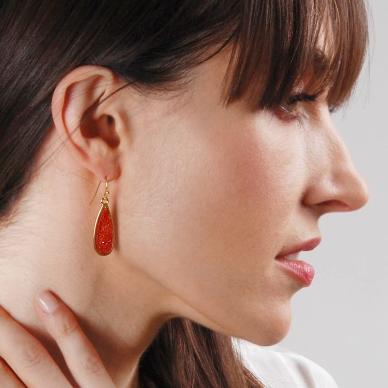 - STYLISH DESIGN - These light-catching drop earrings feature sparkly dangling simulated druzies in bezel settings. Add these beautifully textured dangle earrings to elevate any outfit. The glittery simulated geode stones have a textured cluster appearance and are individually unique.