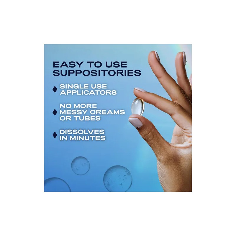 SUPPOSITORIO VAGINAL: Listo cuando lo necesite Se disuelve en minutos y dura día y noche