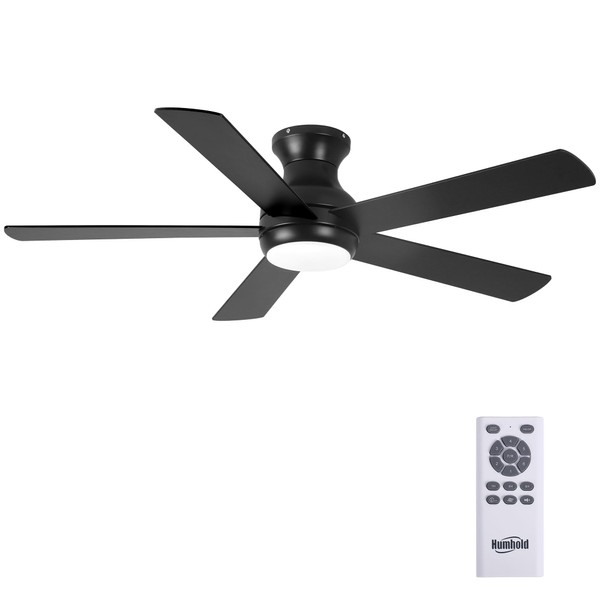 HUMHOLD 52" Flush Mount Ceiling Fans with Lights and Remote Control, Brushed Nickel, 6 Speeds Reversible DC Motor, 5 Blades Low Profile Ceiling Fans LED Light for Bedroom/Living Room (Black)