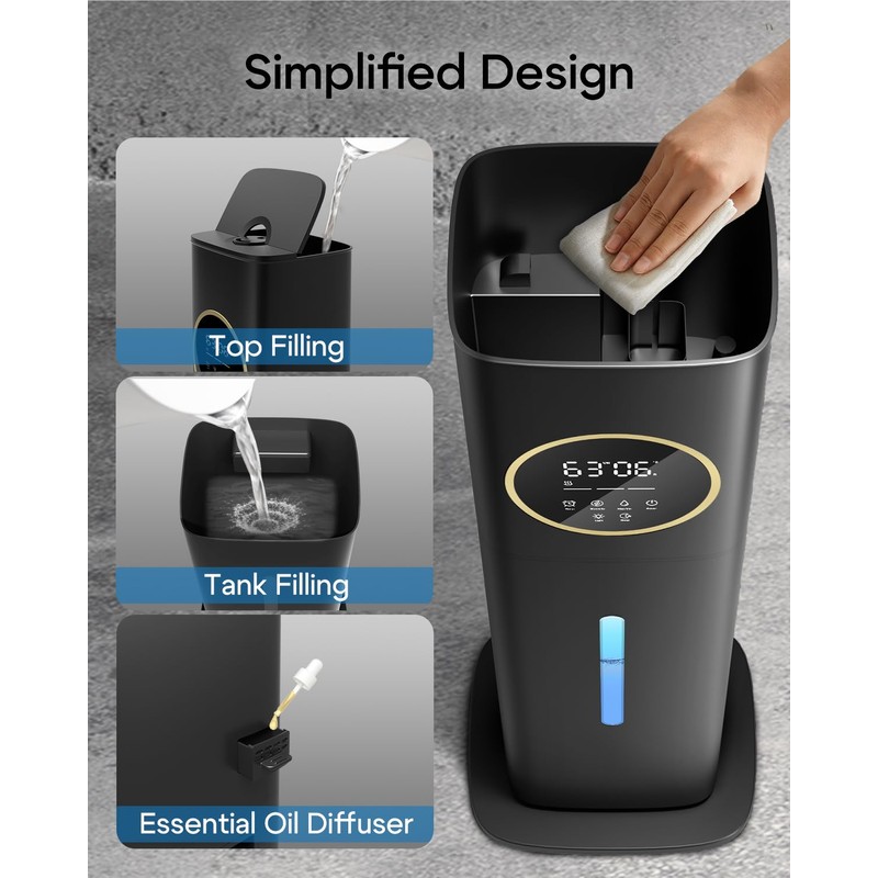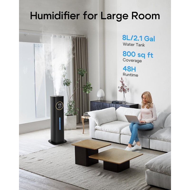 - [๐๐ฎ๐ฟ๐ด๐ฒ ๐๐ฎ๐ฝ๐ฎ๐ฐ๐ถ๐๐ & ๐๐ฒ๐ฎ๐ธ๐ฎ๐ด๐ฒ & ๐ง๐ผ๐ฝ ๐๐ถ๐น๐น๐ถ๐ป๐ด ๐๐ฒ๐๐ถ๐ด๐ป] Our humidifier boasts a removable 8L (2.1Gal) large capacity tank, featuring a top-filling design that eliminates leakage issues and simplifies the refilling process. With a single refill, it can continuously run for up to 40 hrs. The high moisture output of 300mL/h is designed to humidify an area of up to 800 sq.ft, effectively alleviating air and skin dryness. It is the best choice for whole-house humidification, suitable for home, dorms, and living rooms.