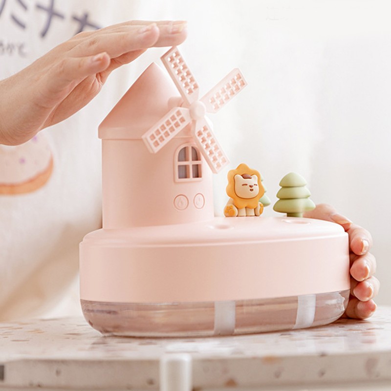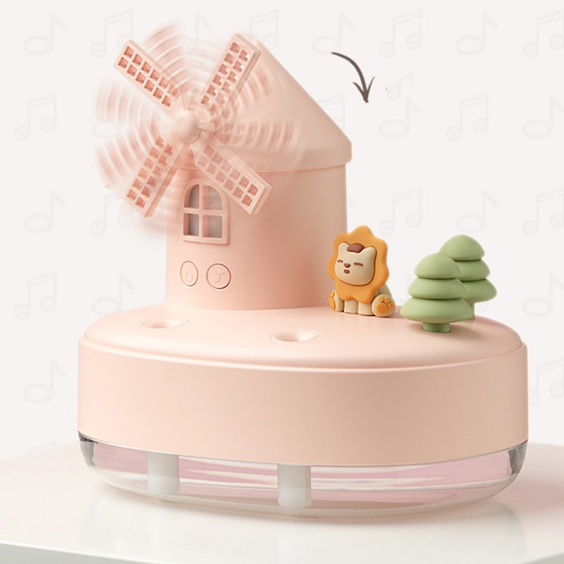 1、Hydration Function: Humidifier allows you to enjoy a full day of moist hydration, prevent dry skin, giving you an easy use experience. 2、Unique Shape: Cute windmill shape with music box, making the humidifier is no longer monotonous, creating a more beautiful appearance. 3、Romantic Music: Delicate and fine mist effectively into the skin, and with the music to make your life more interesting. 4、Night Light: Humidification with a warm night light to create a unique and comfortable atmosphere to meet your multiple use needs. 5、Application: Quiet and low noise humidifier suitable for office, bedroom, dormitory, hotel, travel, living room desktop, etc.