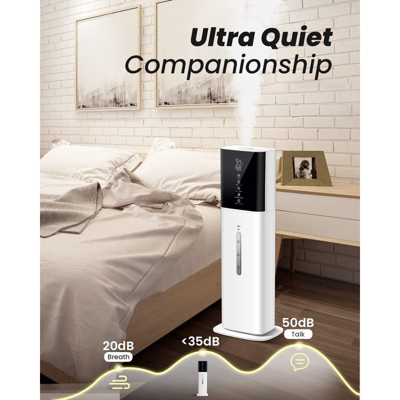 - 【8L Large Capacity & Powerful Mist!】This humidifier has a large 8L(2.11gal) water tank which can support a powerful mist output of 300ml/h for continuously up to 40 hours on a single refill. The humidifiers can satisfy 500 sq ft and is ideal for bedroom, office, plants, etc. The built-in stone ceramic filter enables it to work without any replacement filters. The long slim body can support us use it in any room in our house and won't take up too many spaces!