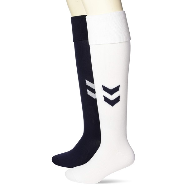 Hummel Men's Long Tights Socks, Set of 2 Pairs Practice Socks, White x Navy (1070)