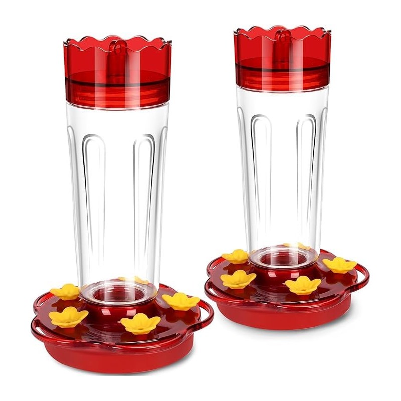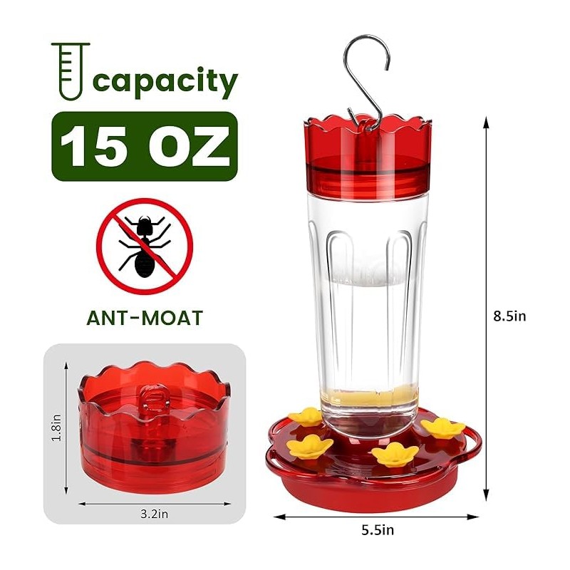 - Spacious Feeding Capacity & Design: Cylinder-shaped feeder holds 15oz of nectar, reducing refill frequency while maintaining freshness. Features 5 flower-shaped feeding ports with perches, allowing multiple hummingbirds to feed comfortably.