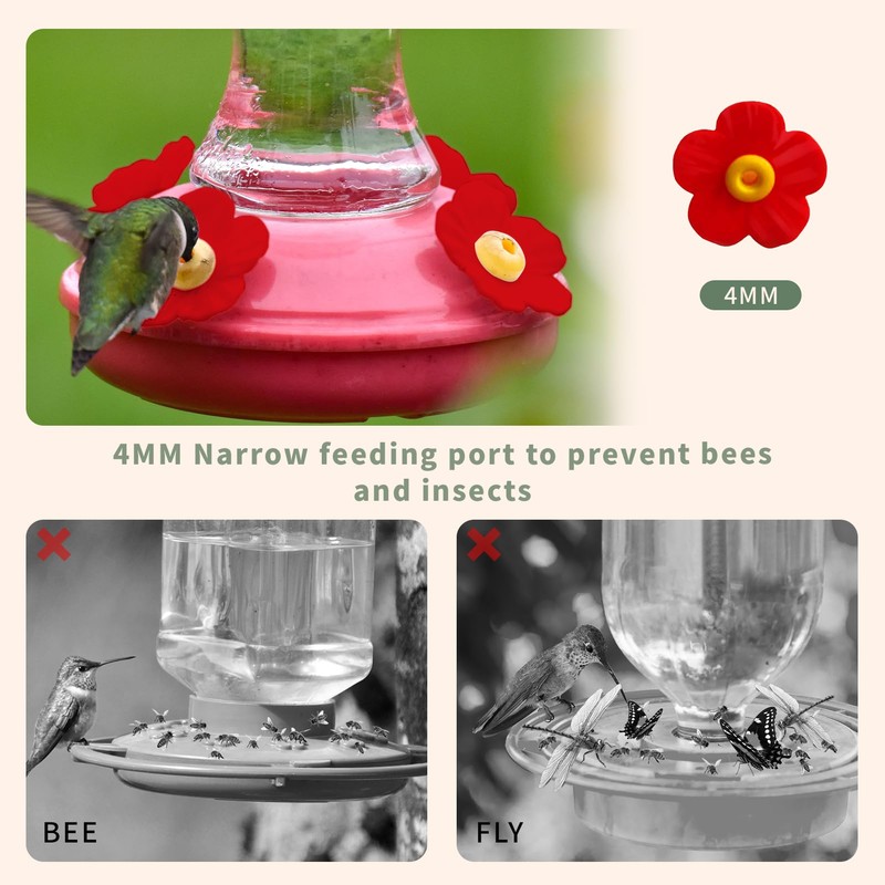 - Thoughtful Design: Our hummingbird feeder flowers help prevent dust and leaves from entering the water. The replacement parts for hummingbirds are designed in flower shapes and bright colors, with flower-shaped ports suitable for hummingbird beaks.